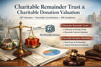 My Financial Valuation provides independent, audit-defensible valuation services for Charitable Remainder Trusts (CRTs) and charitable donation planning involving real estate, partnership interests, closely held businesses, and complex assets.